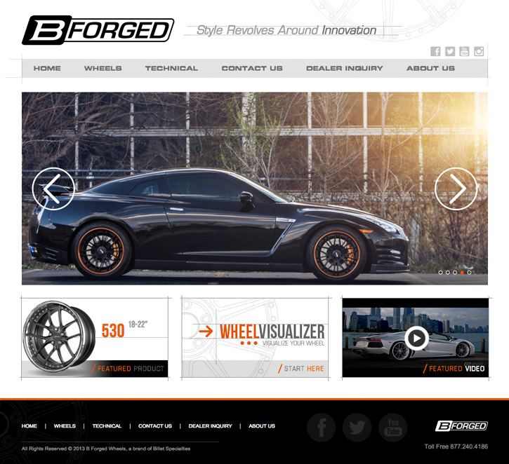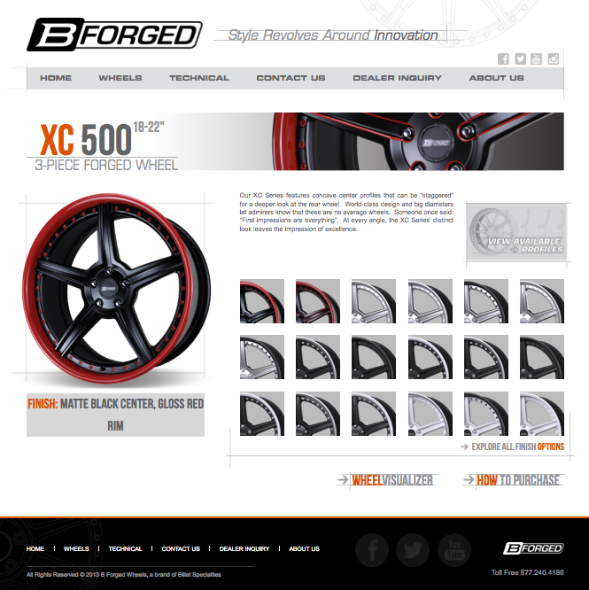 Designed the interface for B-Forged Wheels website. http://www.bforgedwheels.com