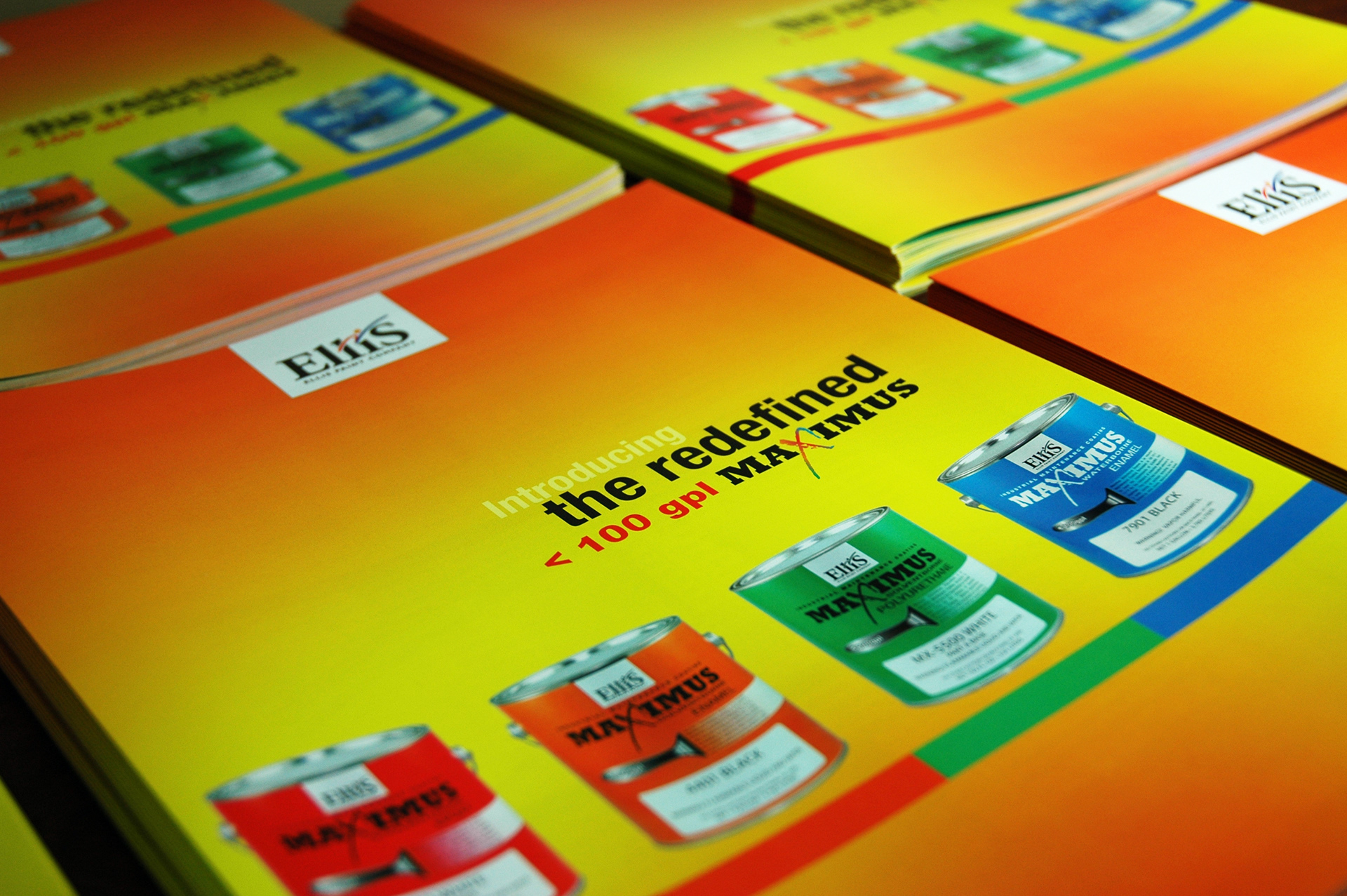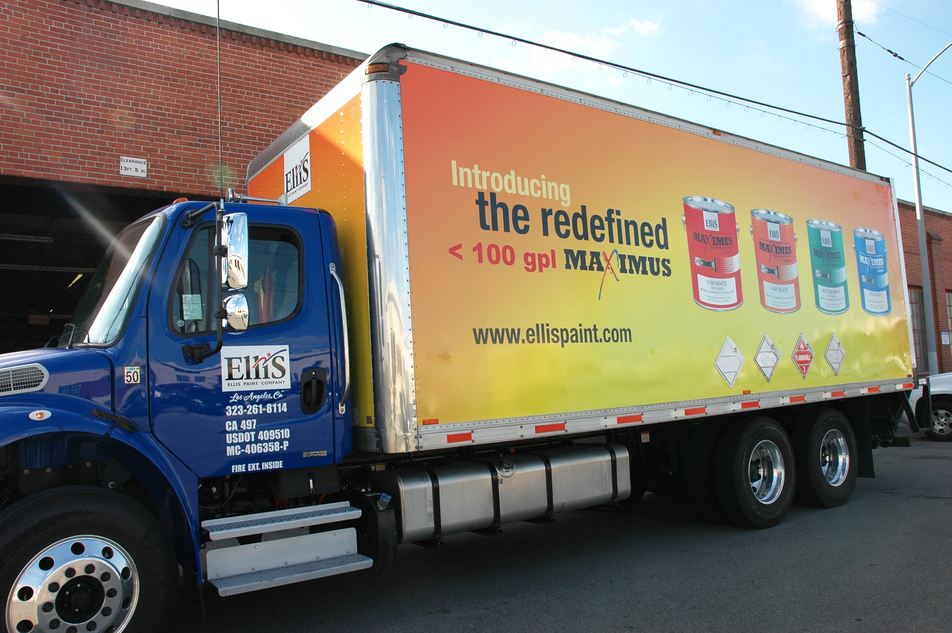 Truck artwork and brochure for Ellis Paint's Maximus paint line.